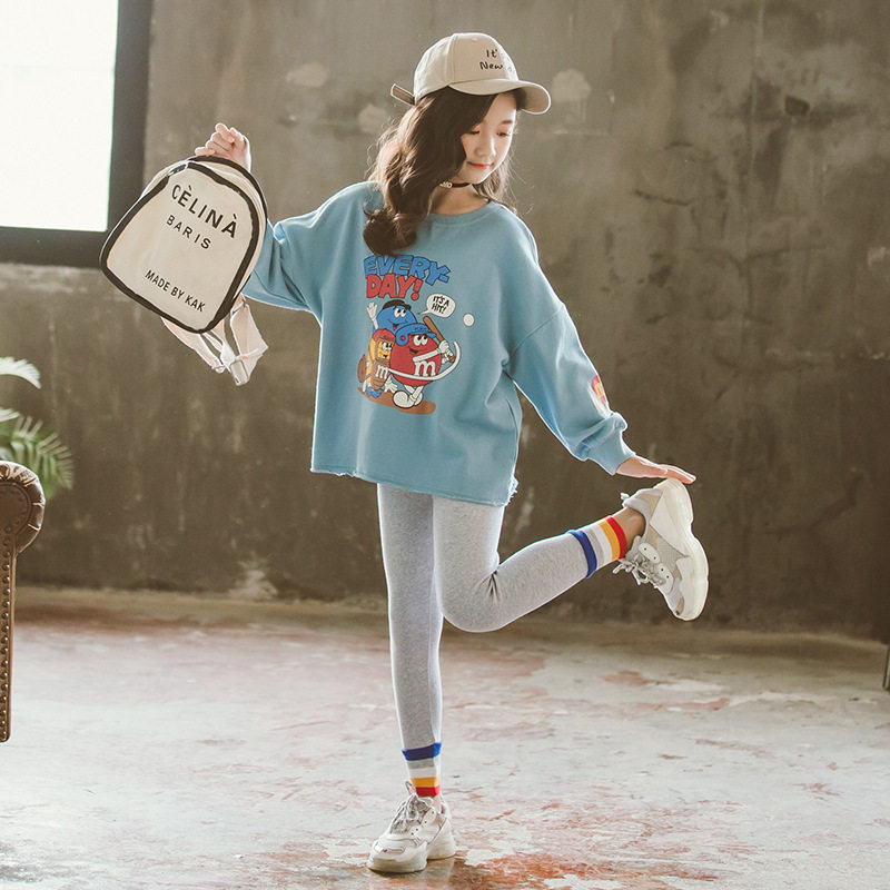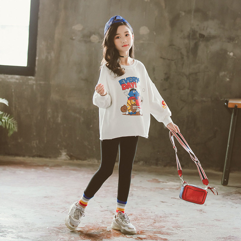 Autumn New Girl Thick T-Shirt for Big Child Han Pi Road Linked Headlord Children's Fashion Long-sleeved Leisure T-shirt