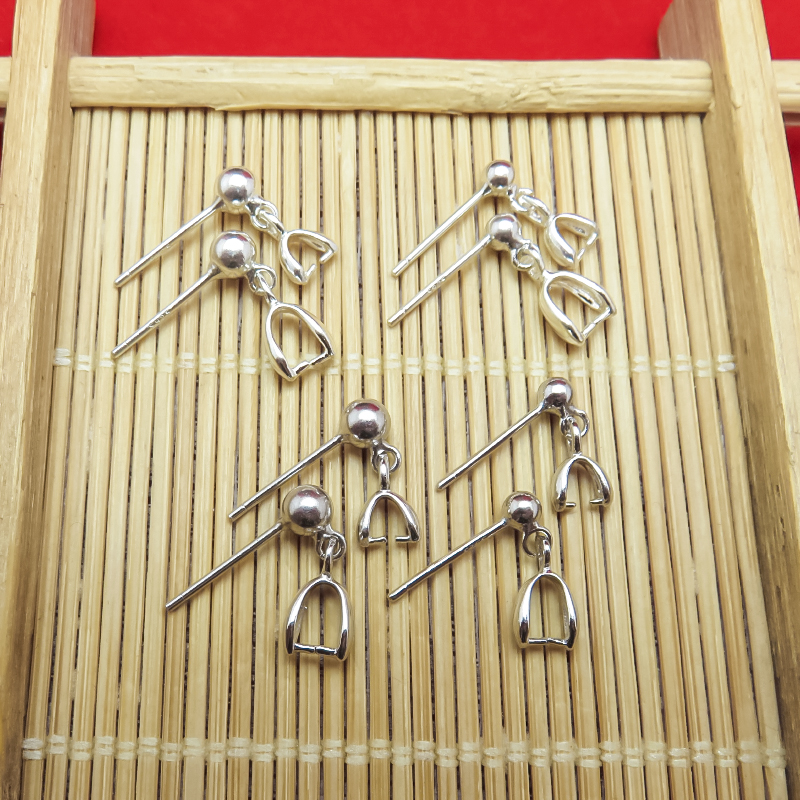Handmade diy earring accessories 925 sterling silver earrings Clip buckle round head ear needle hook jade pendant belt head hypoallergenic