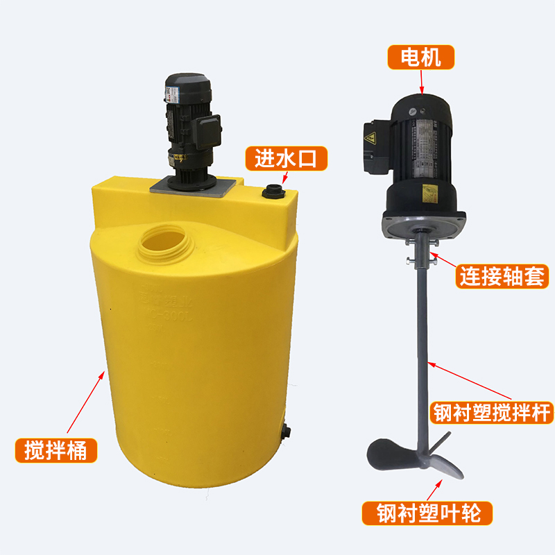40L flat bottom 0 37KW motor (380V) Steel-lined plastic stirring rod Need metering pump and liquid level gauge contact online customer service to order 500L flat bottom 0 75KW