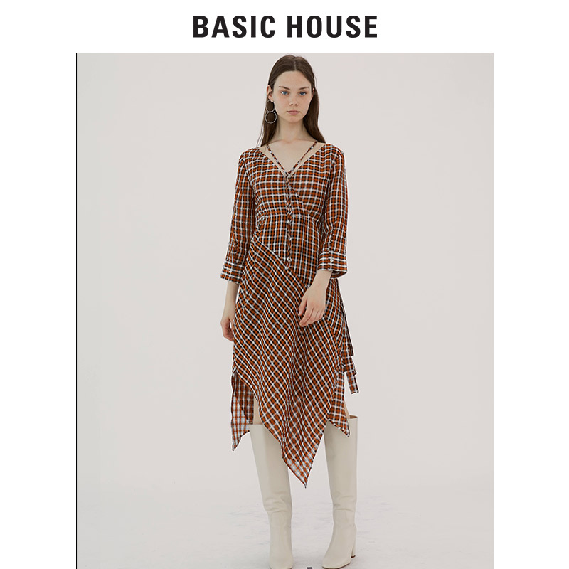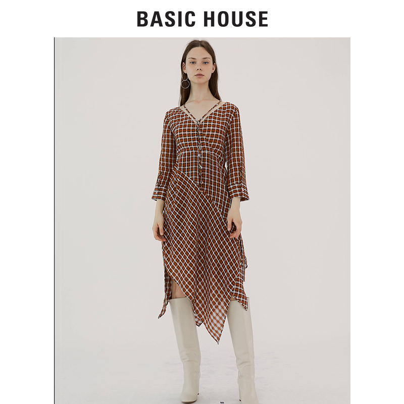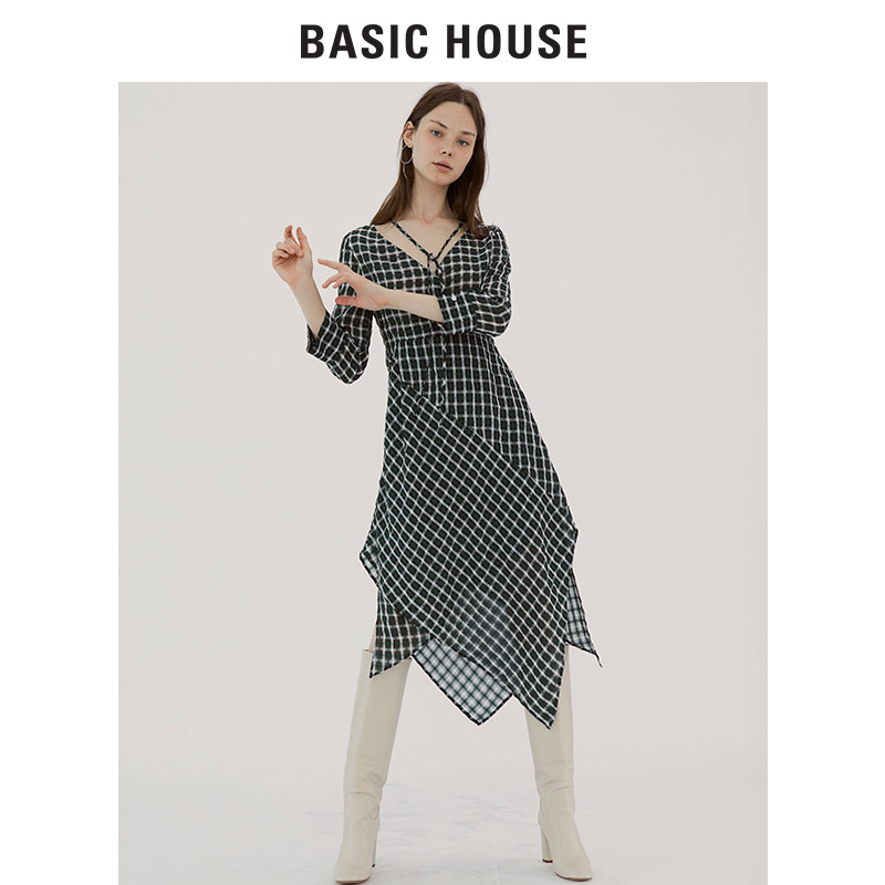 Basic House hundreds of good shopping malls in the same section Autumn Ocean Dress Women V Collar Asymmetry Skirt HTOP521H