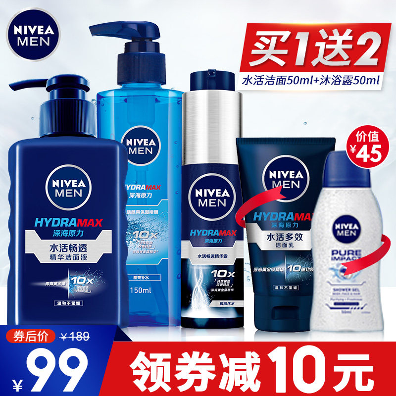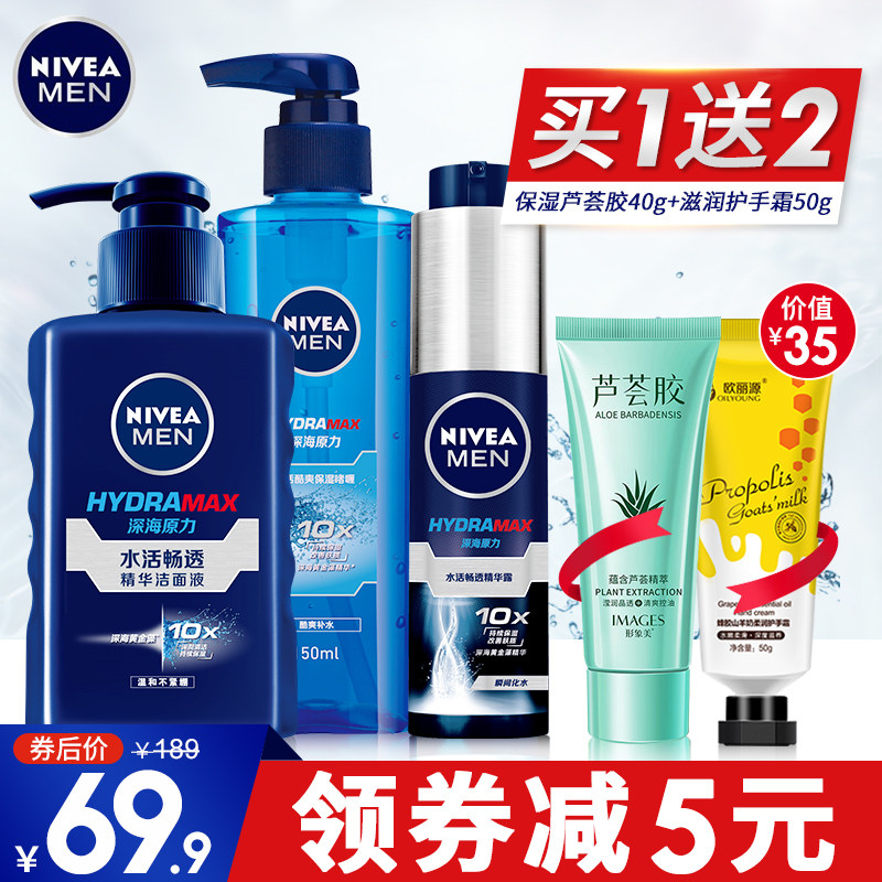 Nivea Men's Set Facial Cleanser Face Cream Body Lotion Moisturizing Moisturizing Small Blue Tube Face Official Flagship Official Website