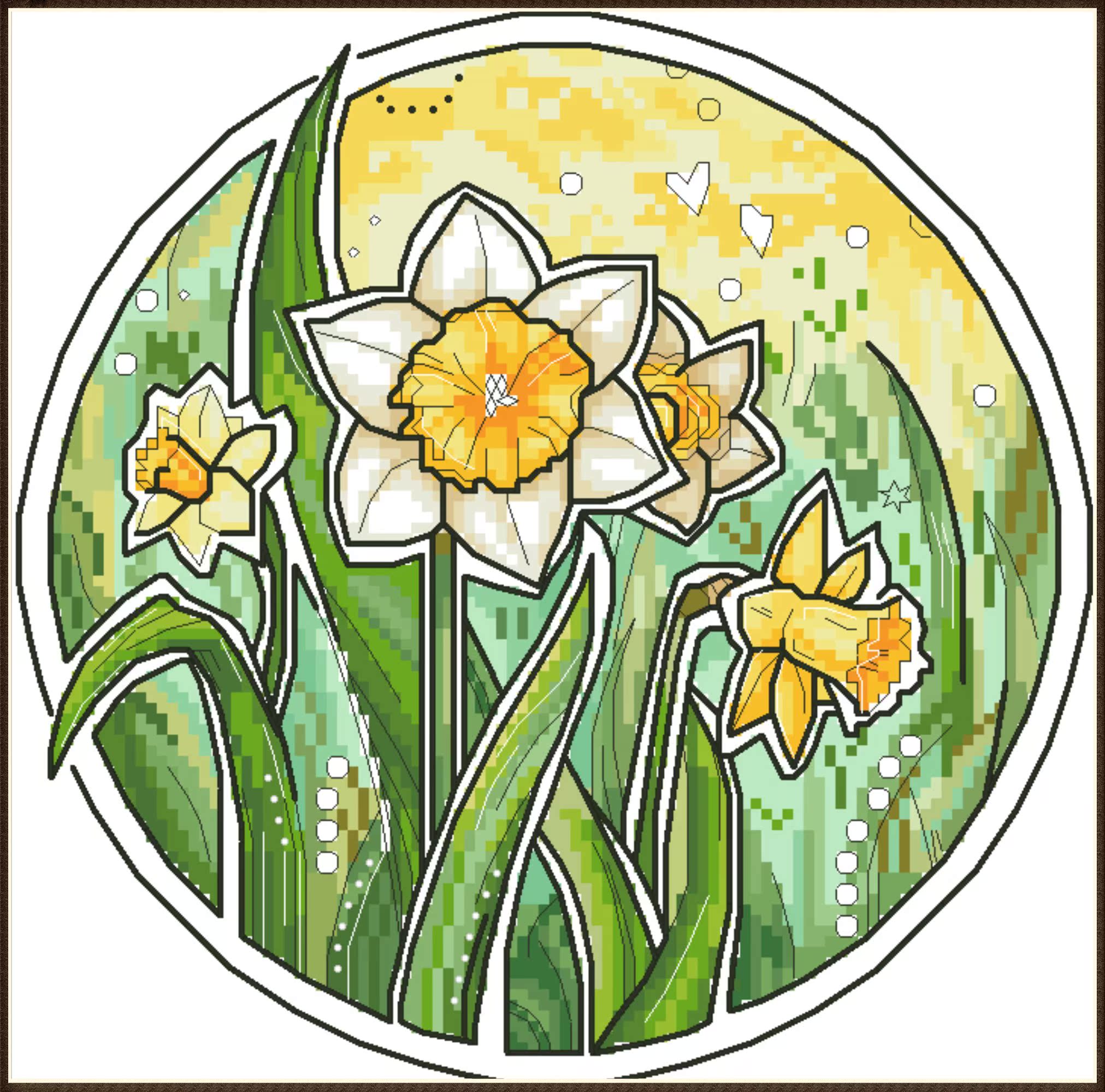 Round flowers-Narcissus cross embroidered paper embroidery on 3 pages 128g Color spray cans paper Print