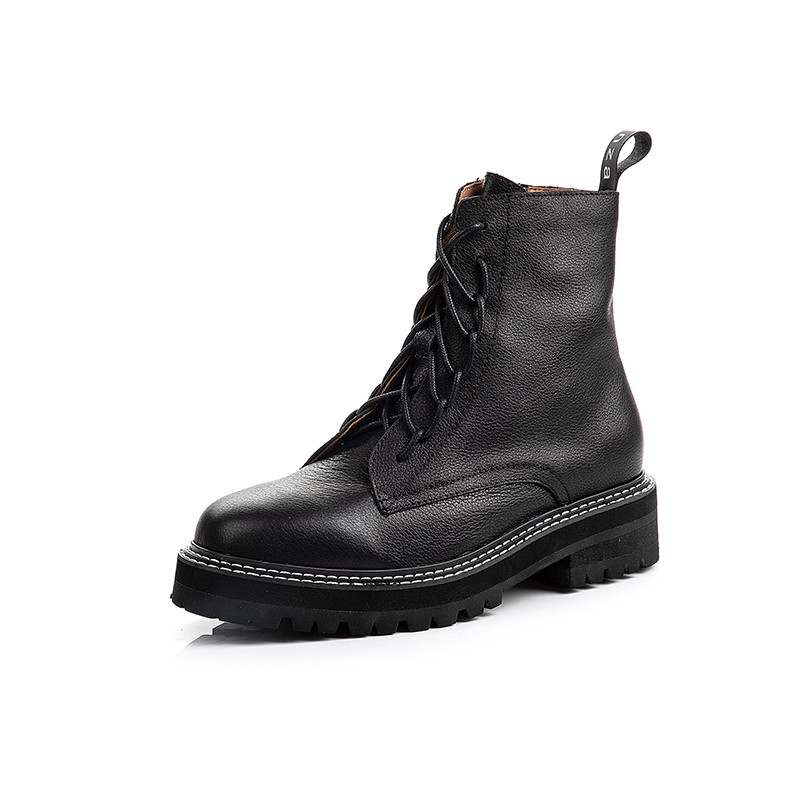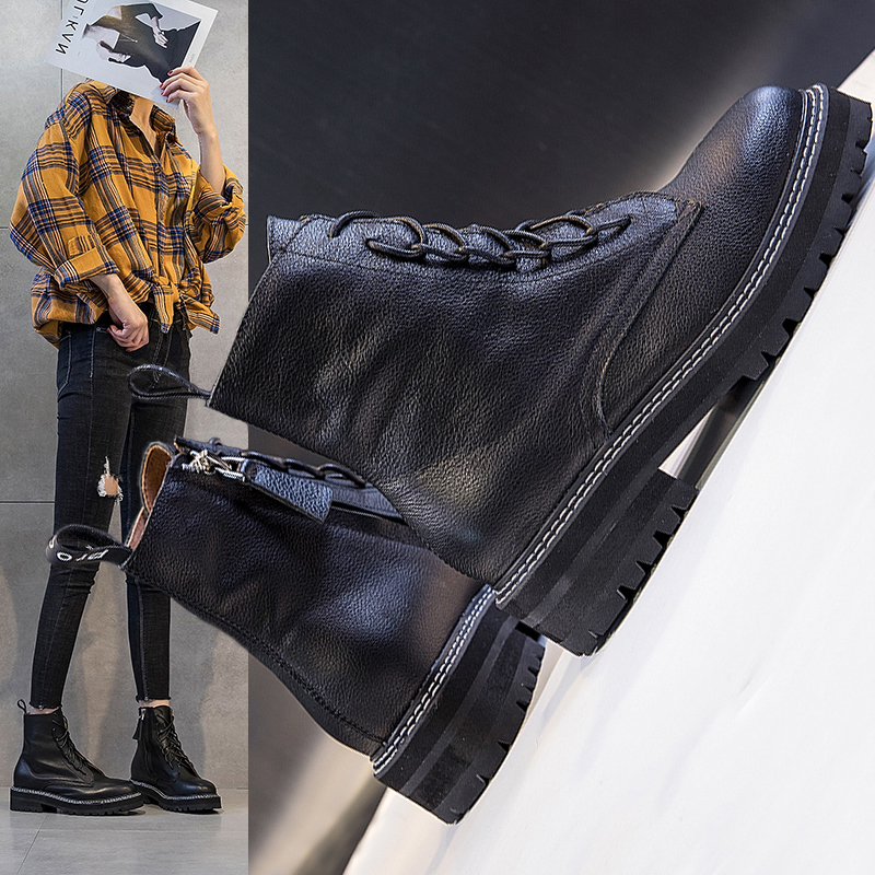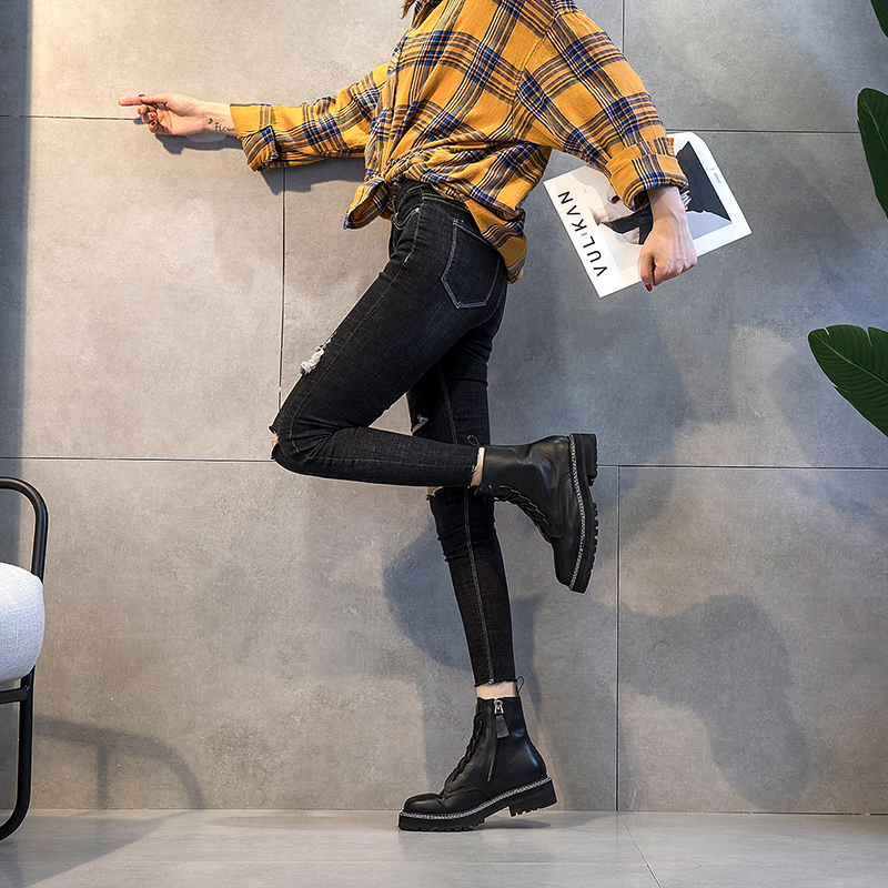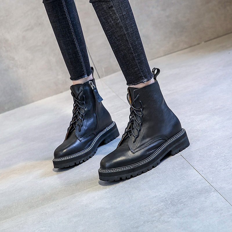 Power to power the same amount of genuine leather short boots female Inn Wind 2021 Winter gush Inlenty wind Black inside heightening Martin boots