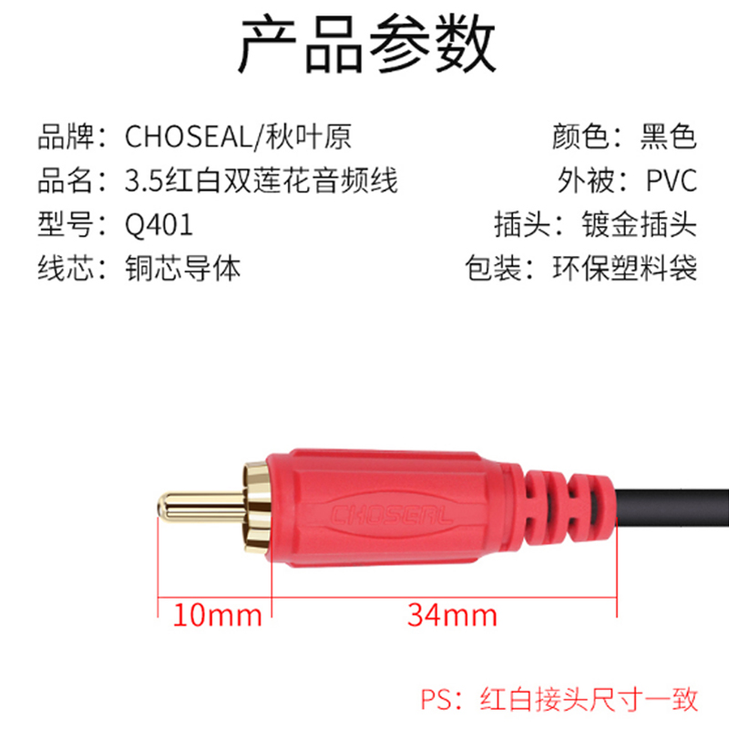 Akihabara Q401 two to two red and white double lotus head audio cable 2 RCA plug audio amplifier AV cable