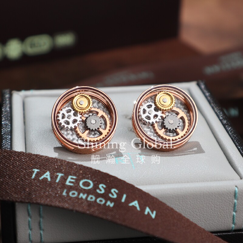 British cuff king TateossianRT mechanical round carbon fiber French cuff button sleeve nail Light luxury gift