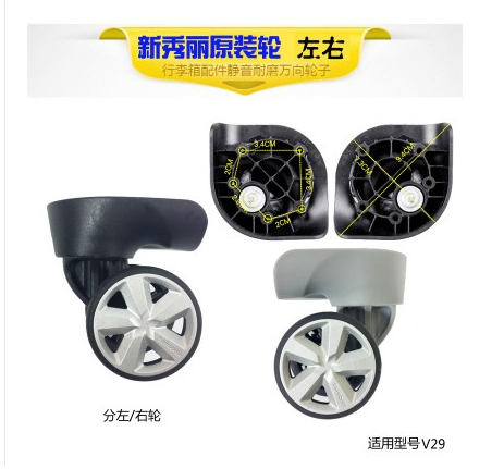 Samsonite44D universal wheel, an old Samsonite pull rod screw, a Samsonite screw, a Samsonite44D new