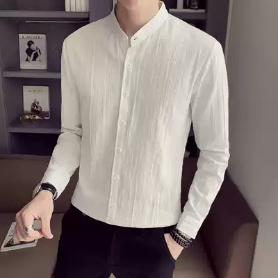 Men's casual shirt long sleeve 2020 new slim stand neck shirt Korean trend handsome white men's shirt