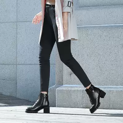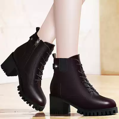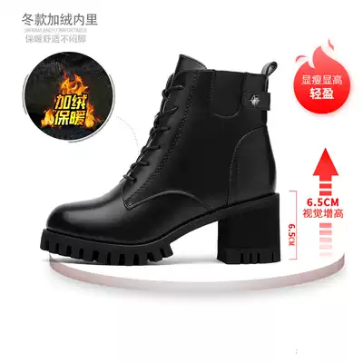 Handsome Martin boots British style high-heeled boots 2021 new all-match women's boots winter plus velvet lace-up thick-heeled boots