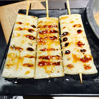 Rice rice cake skewers fried crispy frozen vegetarian handlebars night market snacks barbecue ingredients hot pot skewers