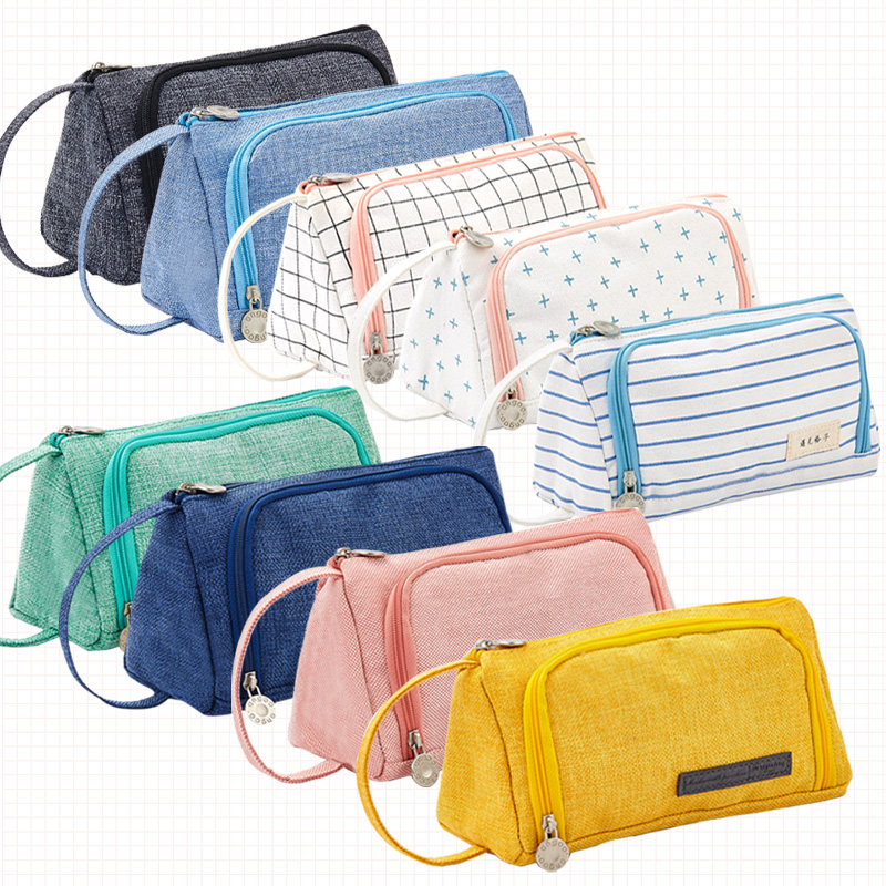 Large capacity canvas office pen bag Korean simple female Cornetto function net red girl heart stationery box High school pencil box Japanese junior high school students primary school students male ins tide college students pen box