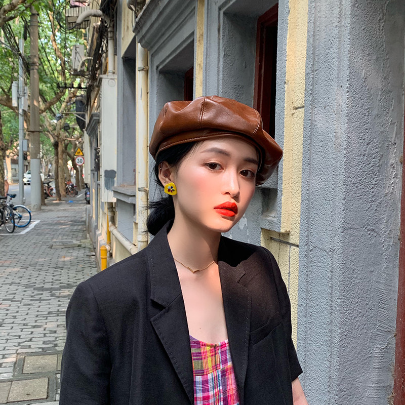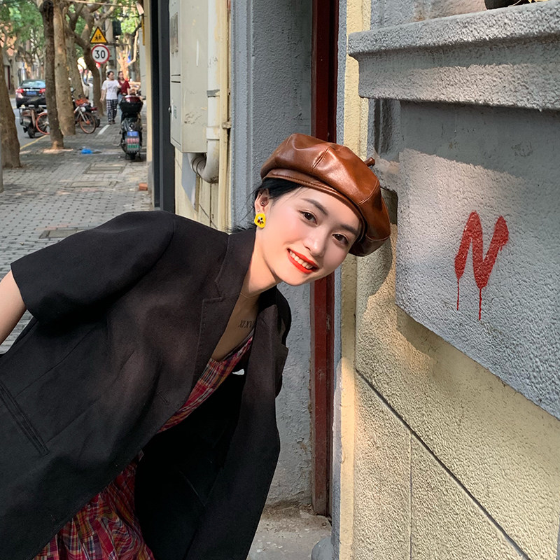 Western Moto Hat Children Han Edition Wave Berets Hat Spring Autumn Inn Reku Pu Cortex Anise Pumpkin Hat Mesh Red Painter Hat