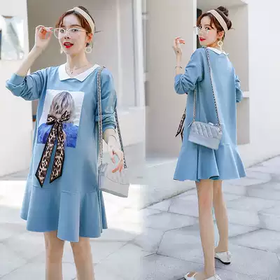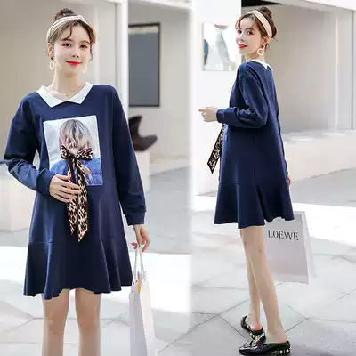 Pregnant woman autumn clothes 2021 New Fashion loose dress long sleeve Spring and Autumn Tide mother thin skirt