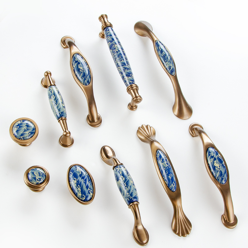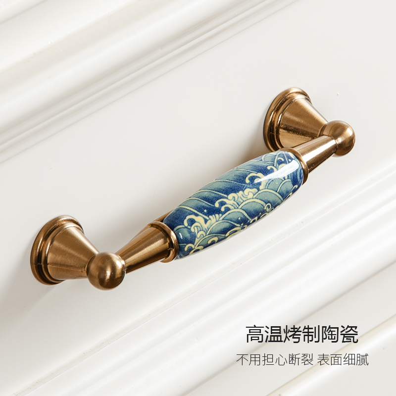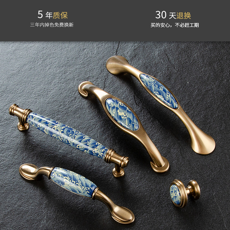 New Chinese drawers handle the whole cabinet cabinet door New Chinese round ceramic handle American simple imitation antique bronze European style handle