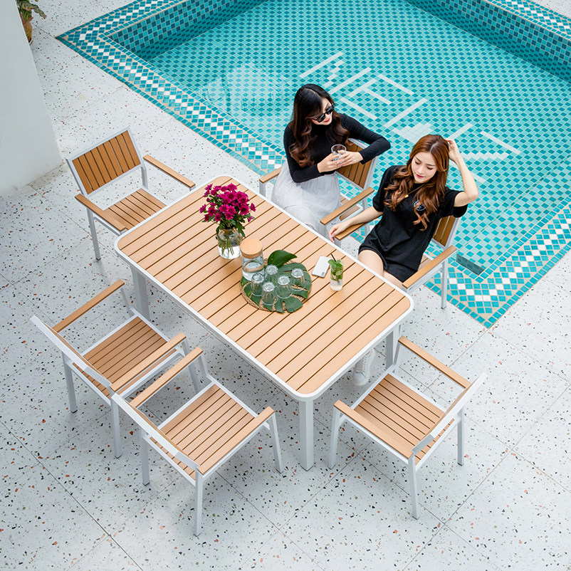 Outdoor table and chairs plastic wood combined casual coffee milk tea table and chairs waterproof sunscreen patio balcony outside swing table and chairs