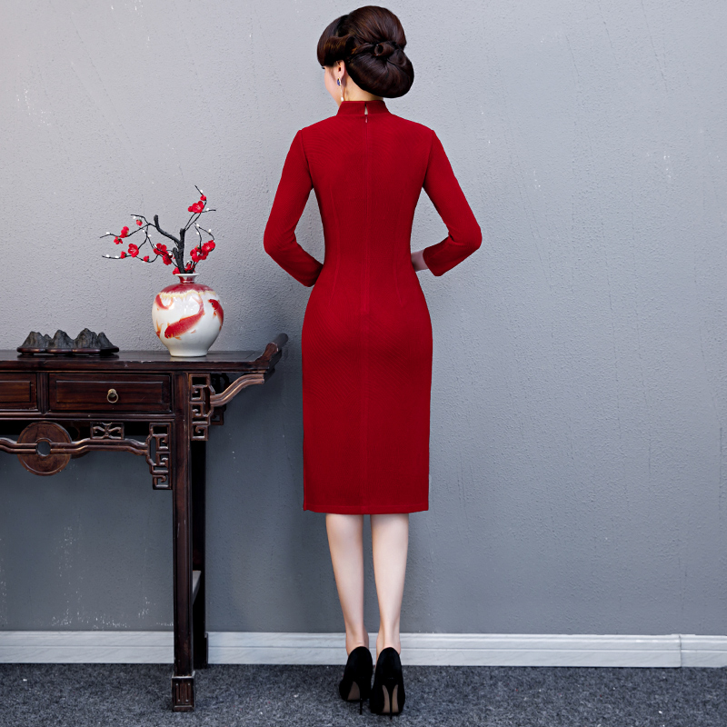 Happy Mother-in-law Qipao Red Ocean Dress 2021 Spring Autumn New Improved Version Elegant Mother Dress Banquet Wedding Gown