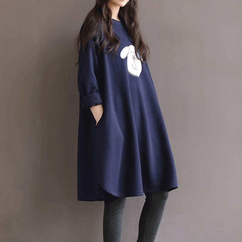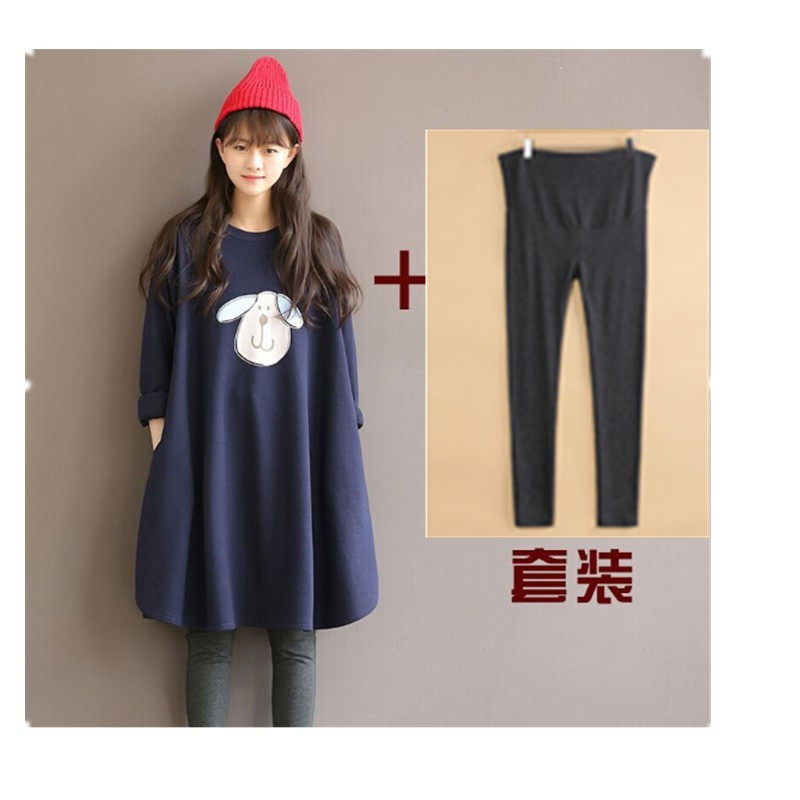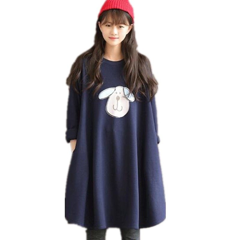 Maternity autumn tops plus size loose cotton long sleeve dress spring and autumn Korean version of the mid-length sweatshirt jacket tide