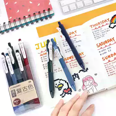 Dot stone retro color gel pen press wine red wine red color water pen multi color student 0 5 retro quick drying pen set