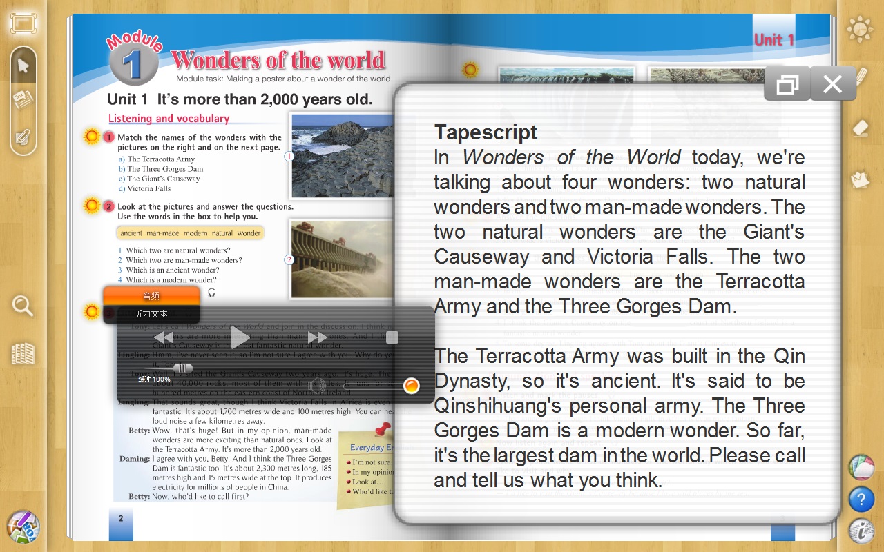 The audio animation and computer-point reading learning software for the synchronous learning of the upper and lower volumes of the English ninth grade of English