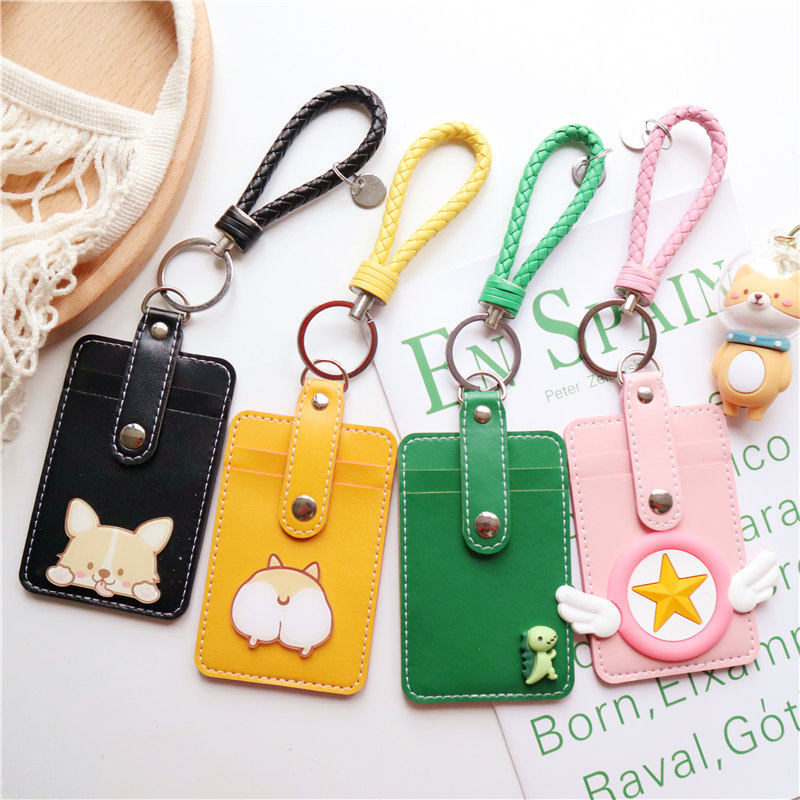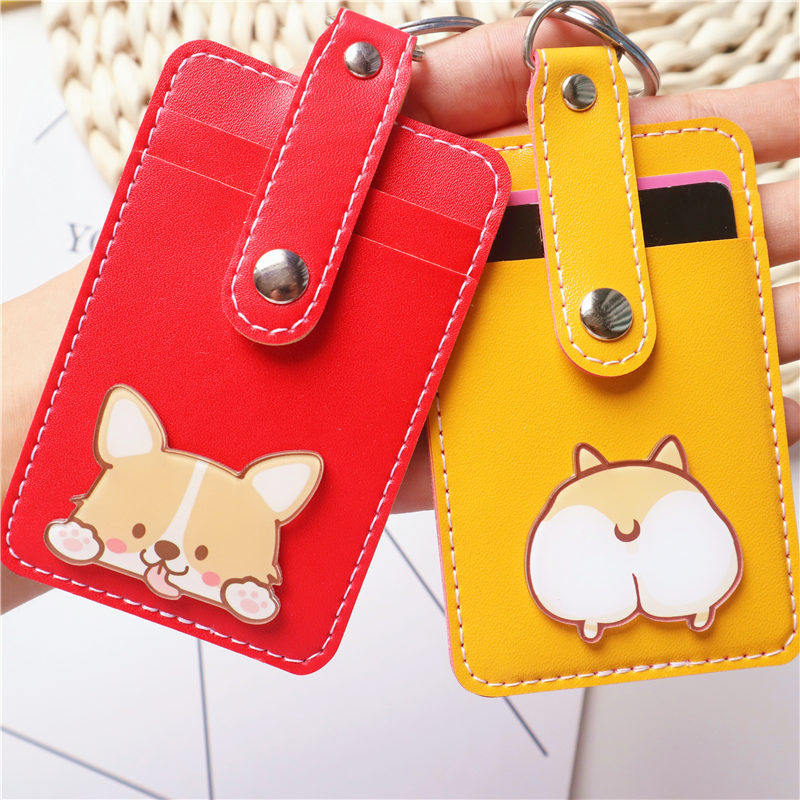 Corgi cute soft campus multi-card bus card bag keychain access control student card protective cover rice card cover