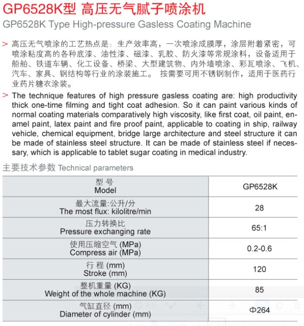 6528K high-pressure airless spray coating machine Shanghai Hongsen Hongshen Pneumatic steel structure Batch-earth ship bridge pipe