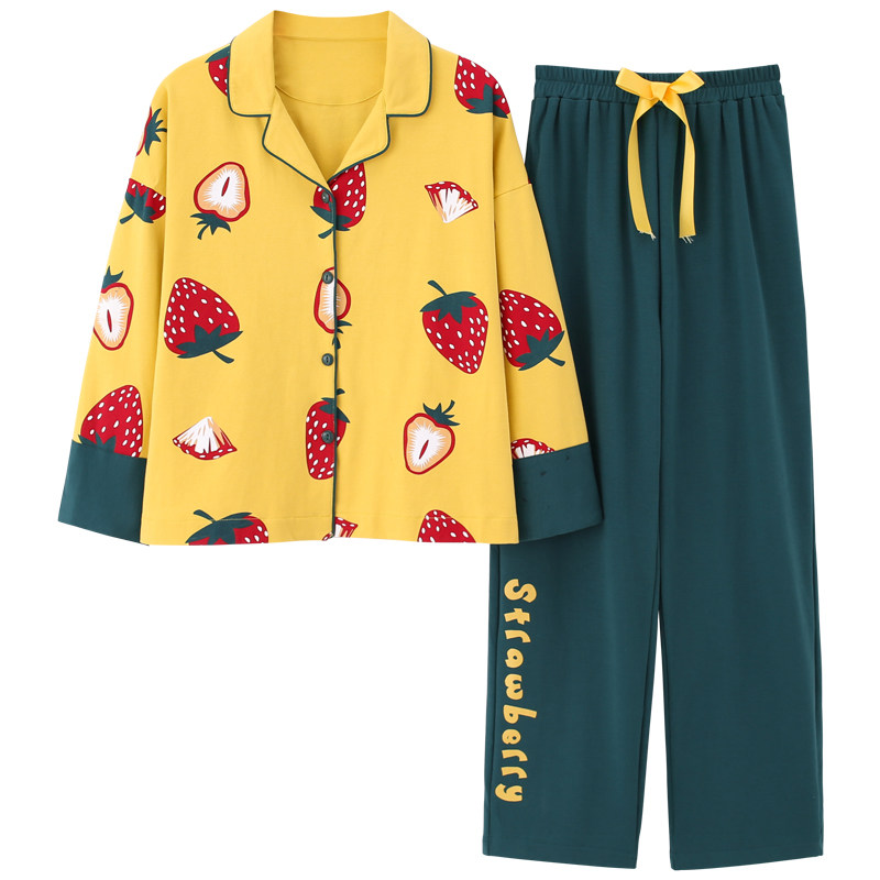 Long Sleeve Pajamas Lady Spring Autumn Season Pure Cotton Thin piece Two-piece suit Home Suit Able To Go Out Casual Net Red with full cotton
