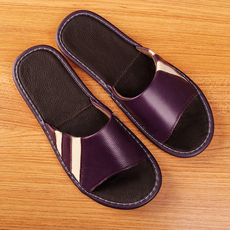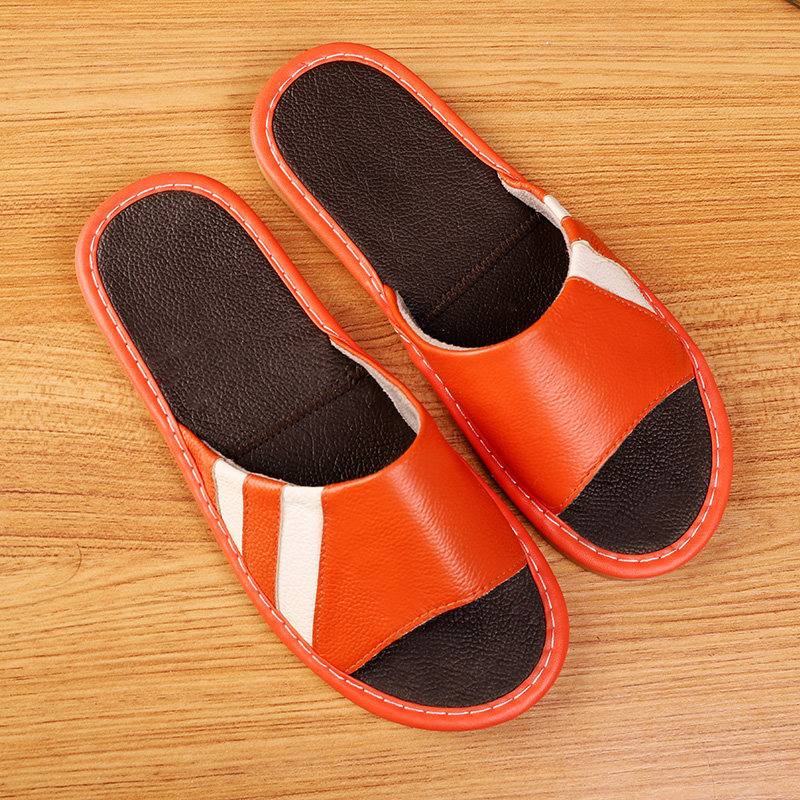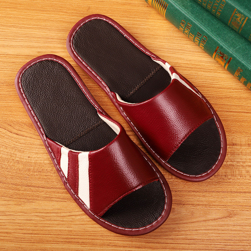 Summer Non-slip Bull Leather Slippers Interior Home Floor Cool Slippers for men and women Home leather noodles Home Summer leather slippers