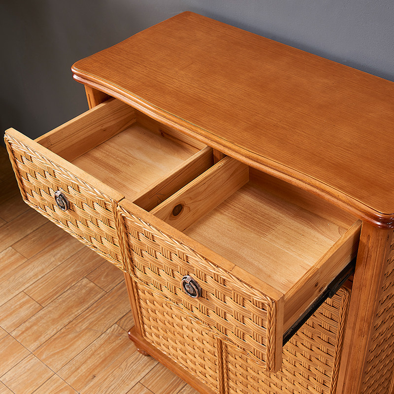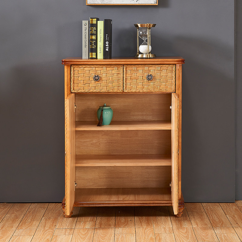 Double Door Shoe Cabinet Authentic Rattan Wood Genguan Cabinets Solid Wood Southeast Asian Style Vines Collection Cabinet Natural Rattan Furniture