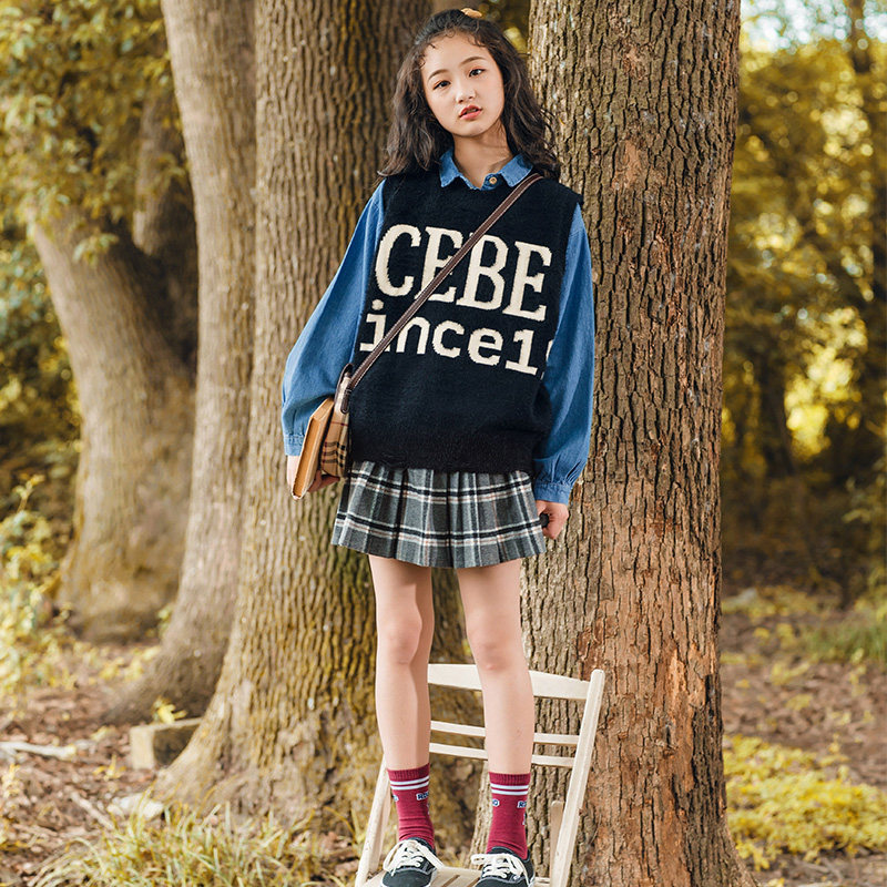Women's big children's autumn clothes 2021 new college style children's 12-year-old foreign style 15 girls net red suit girls Korean version 13