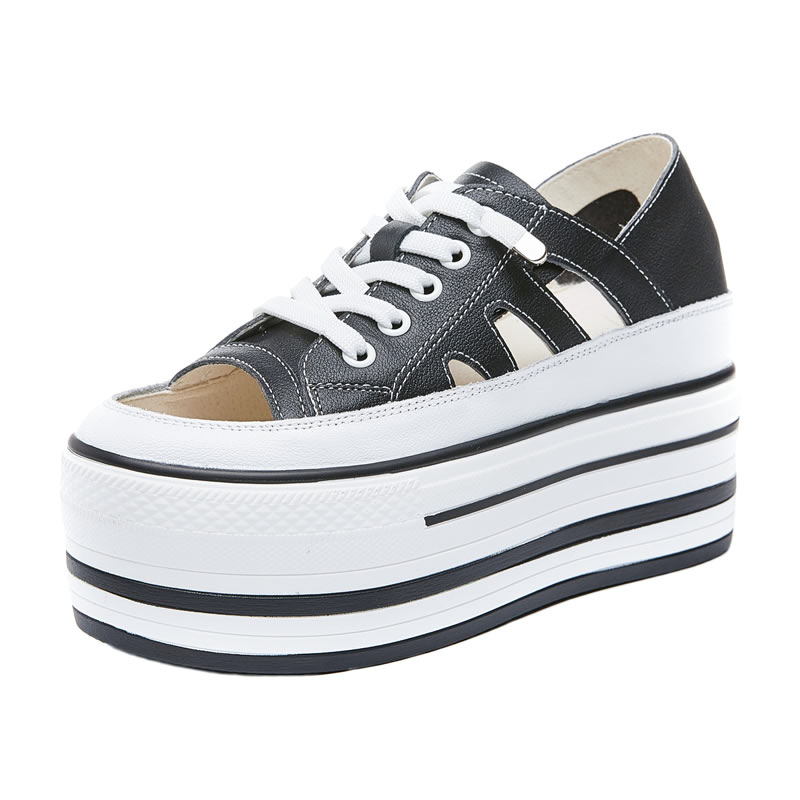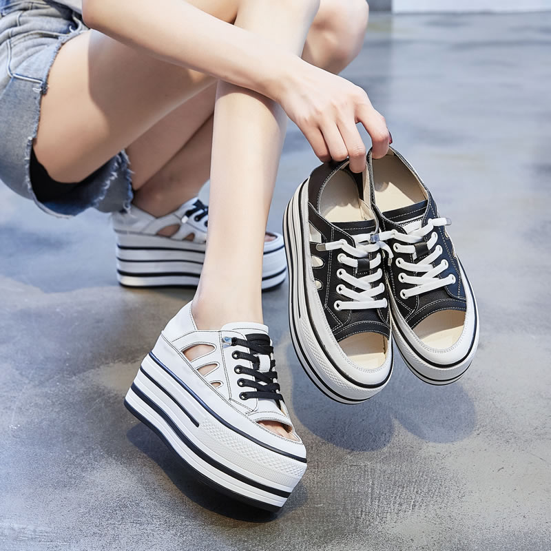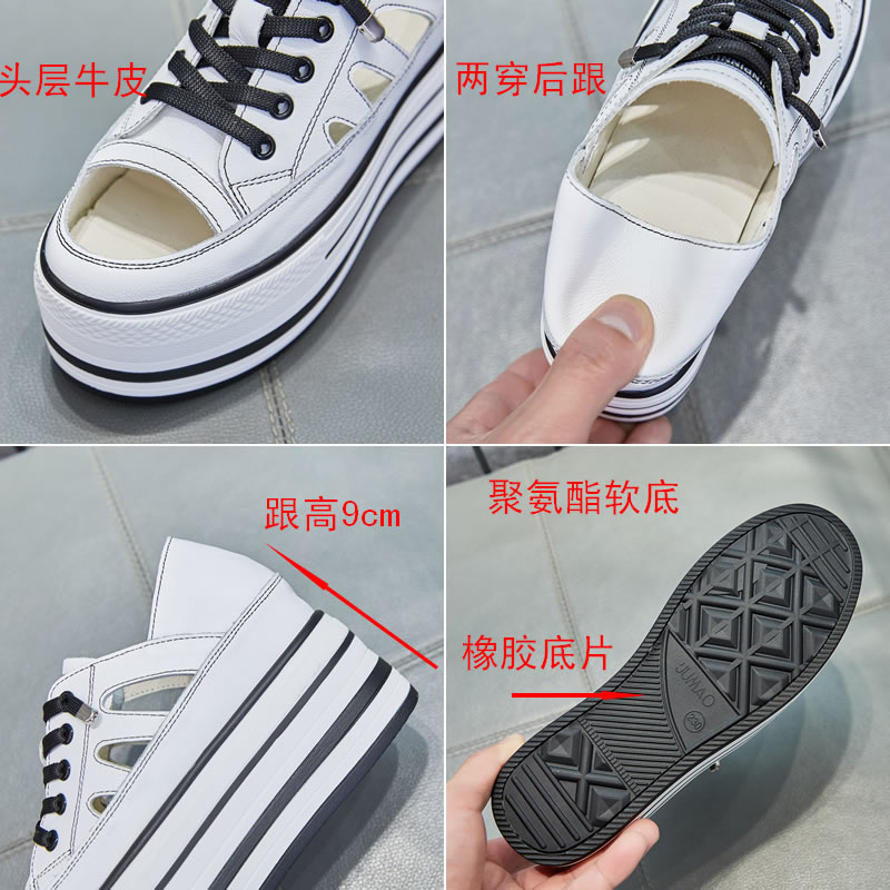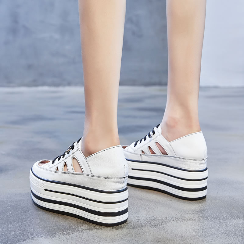 Small white shoes female summer hollowed-out genuine leather Lefu shoes Inner heightening 10cm 100 lap casual thick bottom pine cake a foot pedal sandal