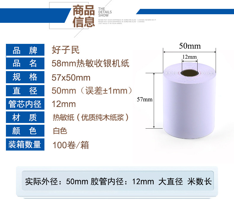57*50 no tube core 30 rolls box about 23 meters 57*50 no tube core 120 rolls box about 23 meters 57x50 small ticket paper is not afraid of rain and oil