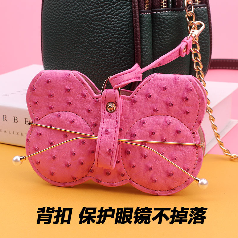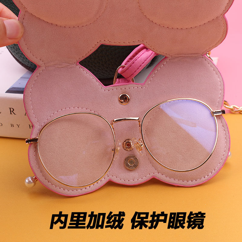 Ins cute girl sunglasses case portable anti-pressure leather protection clip goggles bag ornaments storage sunglasses bag