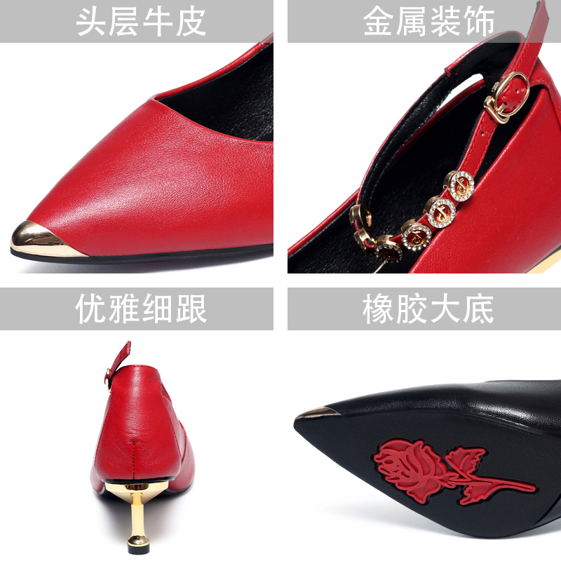 Stiletto single shoes women's high-heeled leather shoes in the summer of 2023 new pointed toe soft leather all-match red summer mid-heel leather shoes