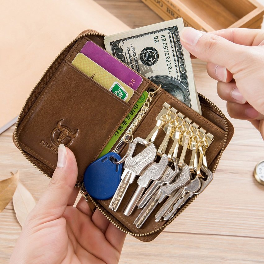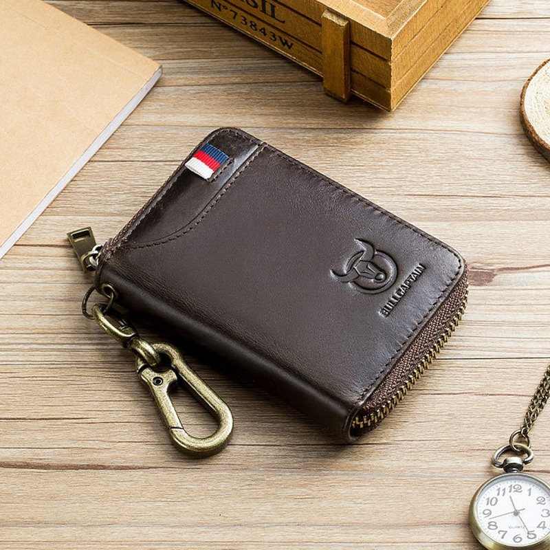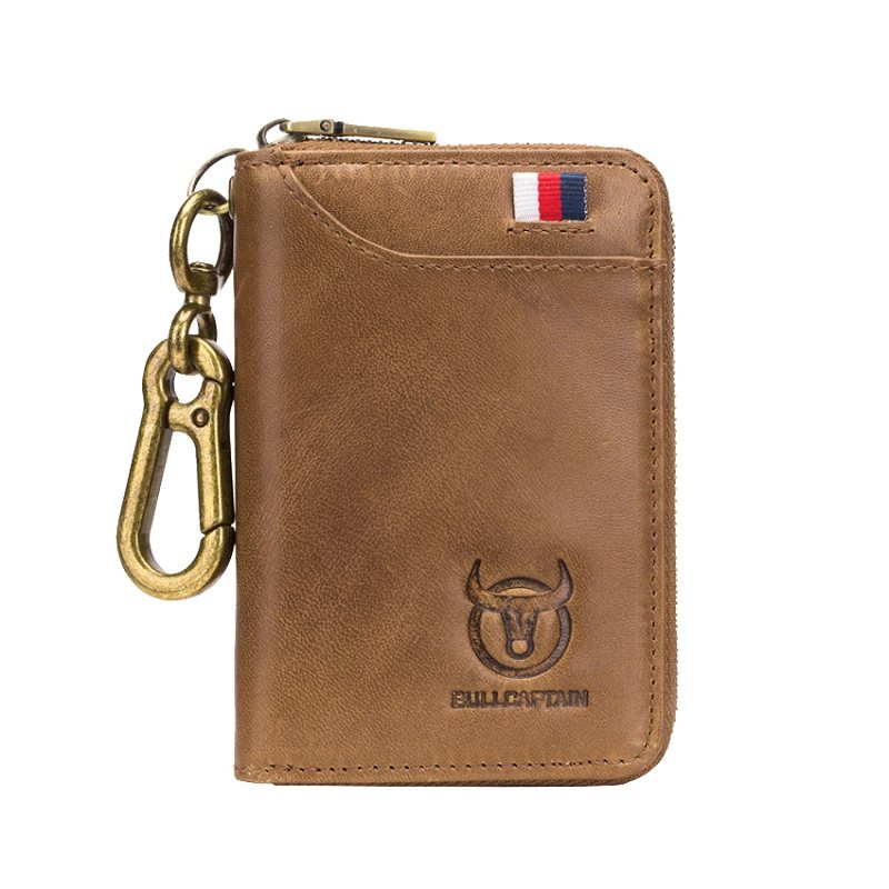 Bull Captain Genuine Leather Key Bag Men's Door Forbidden Card Cover Large Capacity Male Burglar Brushed Double Head Layer Cow Leather Zero Money Card Bag