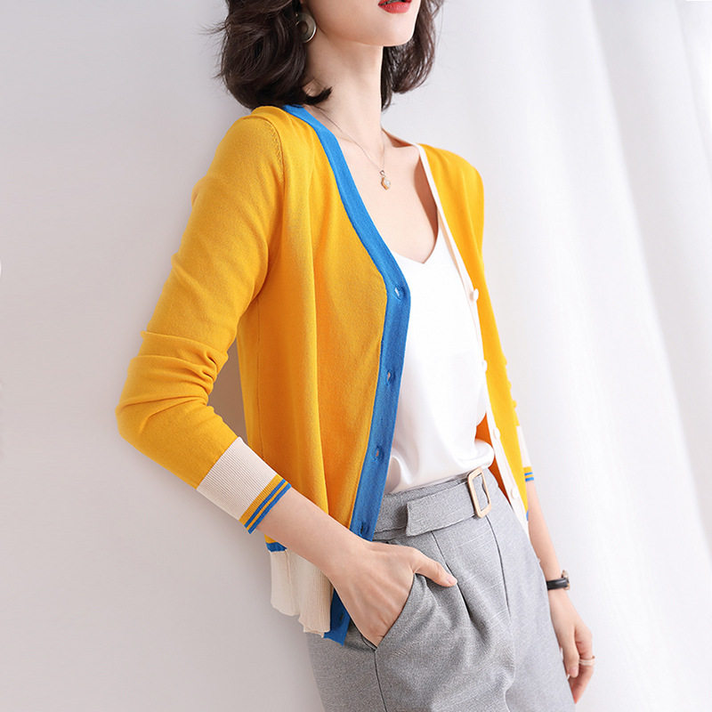 Mianma Schman's short ice-wire knitted cardigan featured a shawl-thin coat over her new spring/autumn 2021 sweater