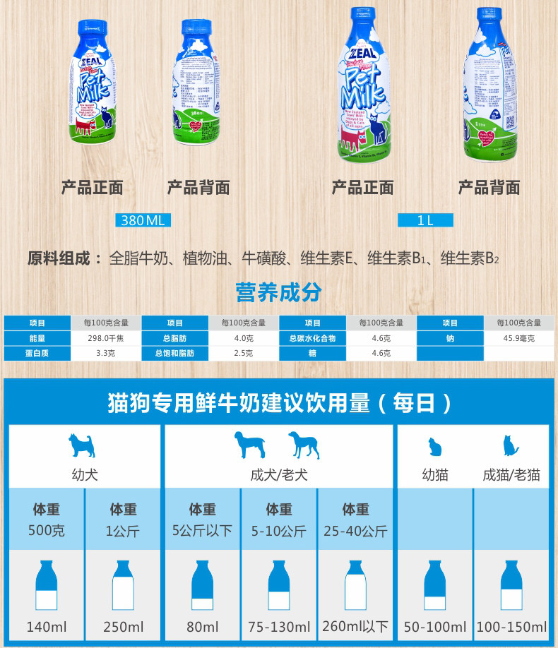New Zealand ZEAL pet fresh milk dog milk without lactose can replace powdered milk canine cow's milk 380ml