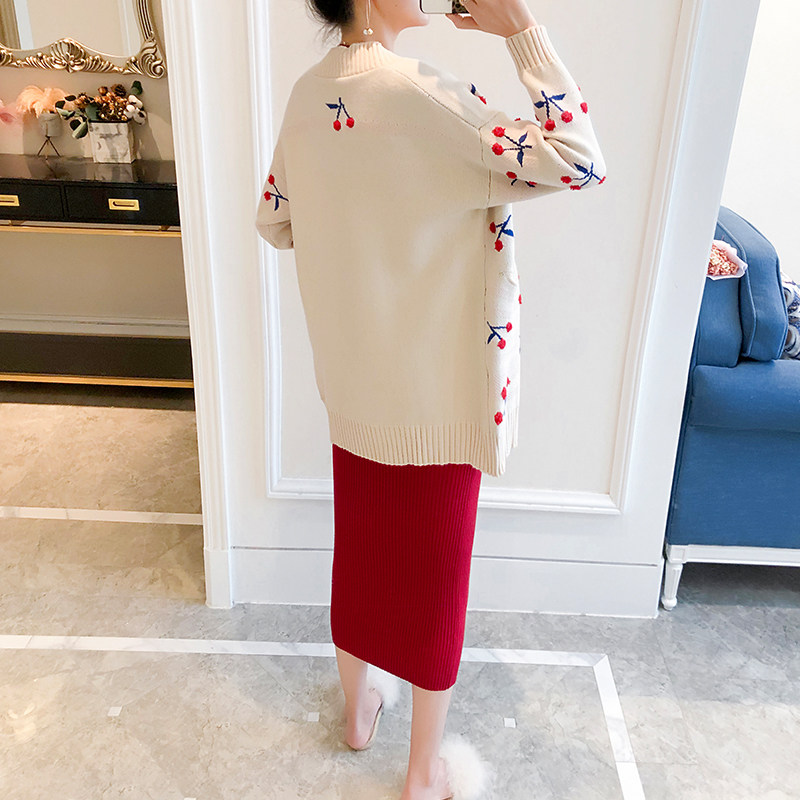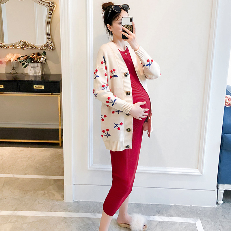 Red (cherry) cardioloured black knit dress beige (cherry) open-shirt wine red knit dress with red (cherry) cardioloured single piece of beige (cherry) cardioloured single-piece wine red knit