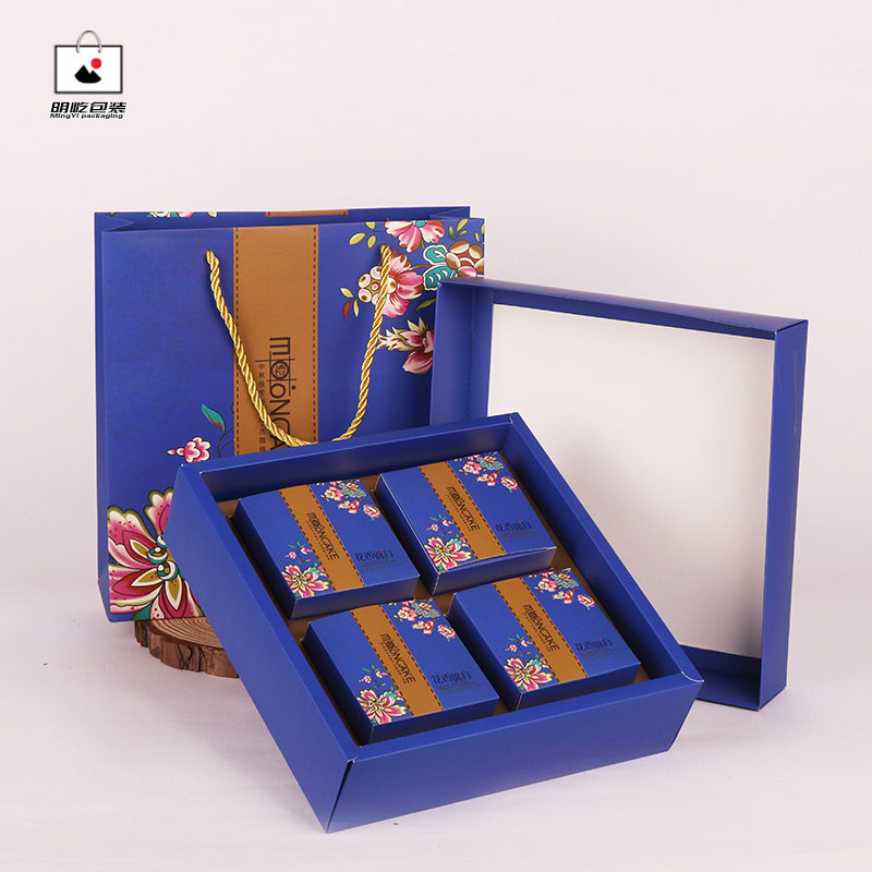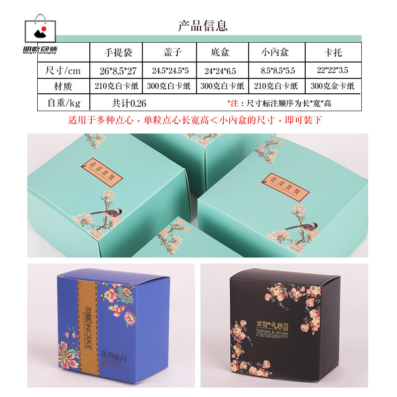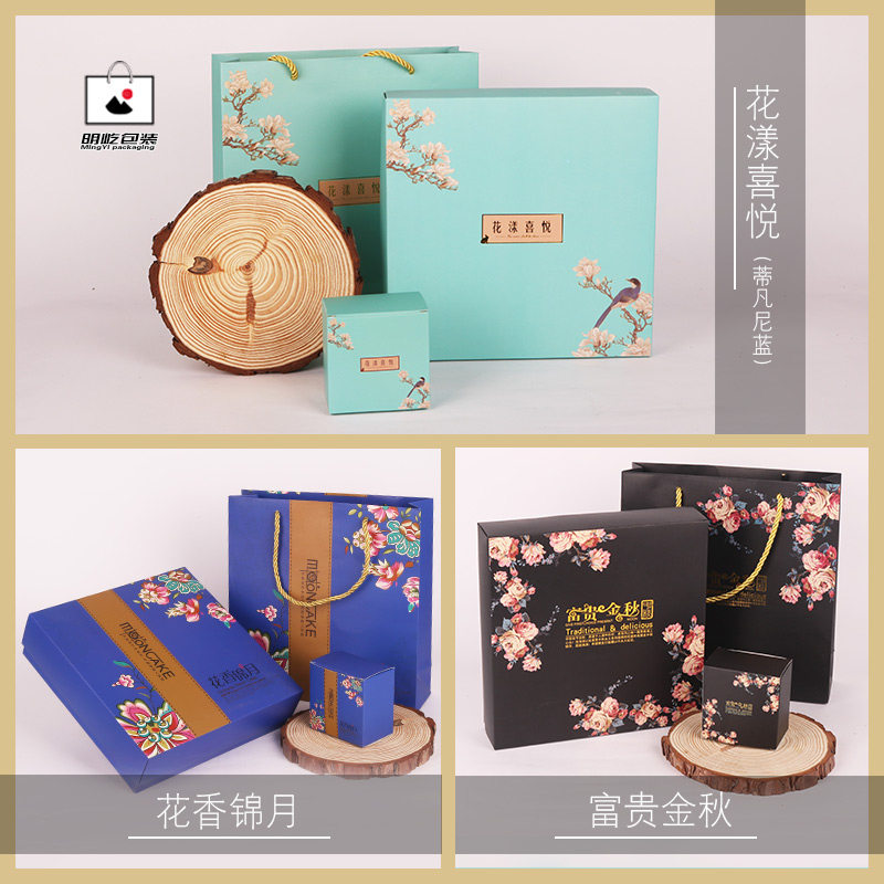 Multiple moon cakes such as ice skin, yellow buff and green bean cake