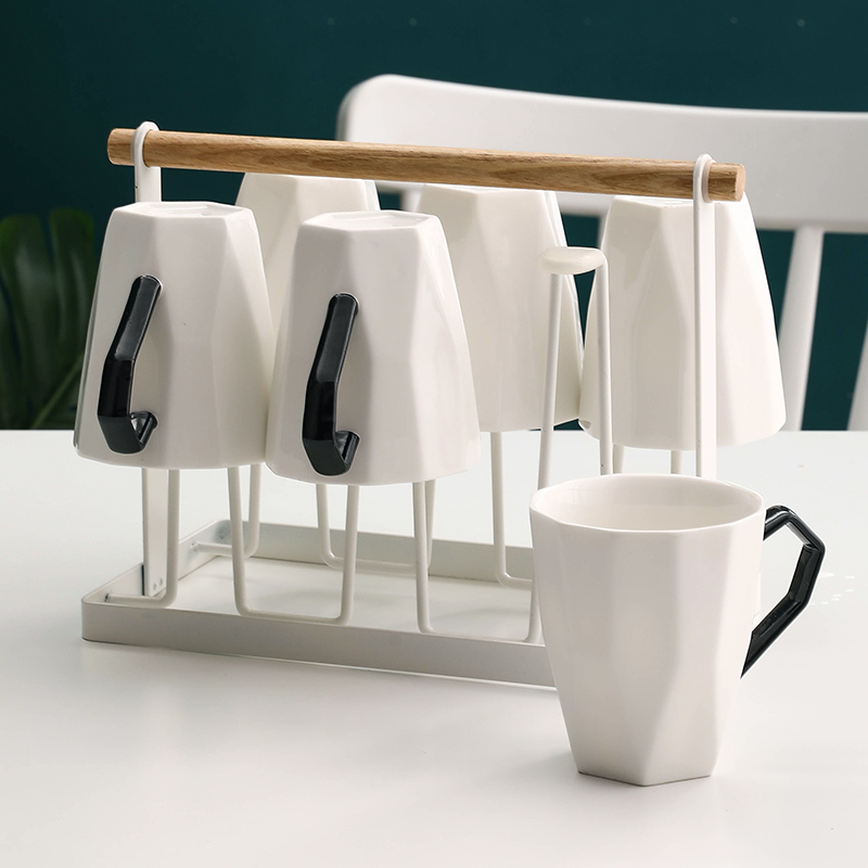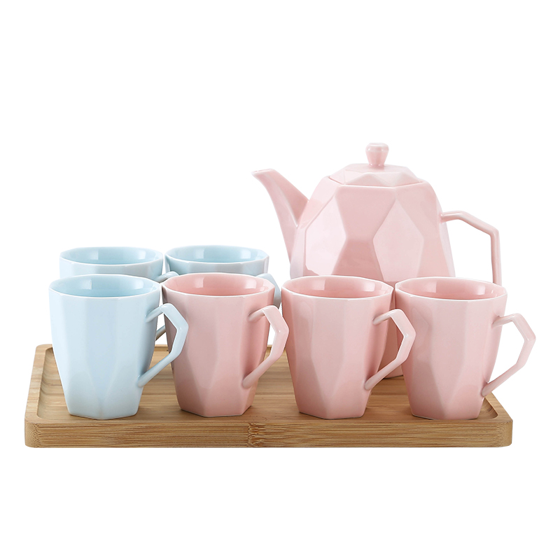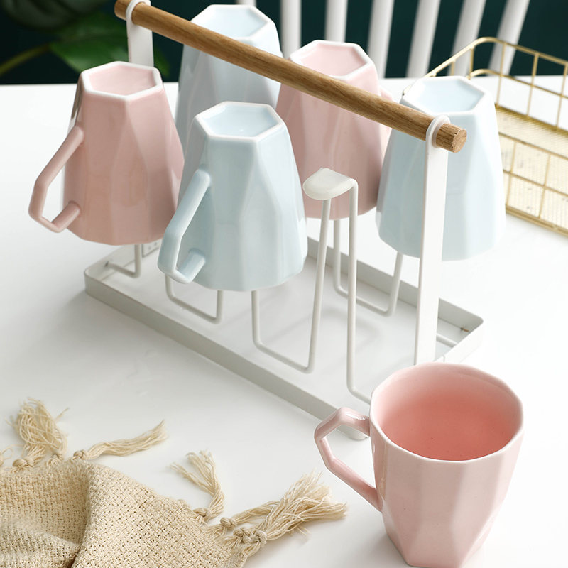 Diamond two-color 6-cup with rack to send spoon diamond pink pot two-color cup mixed spoon to send cup brush diamond blue pot two-color cup mixed spoon to send cup brush