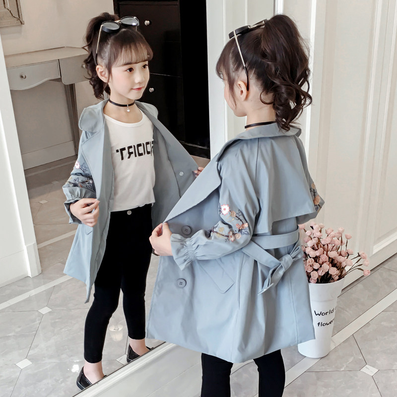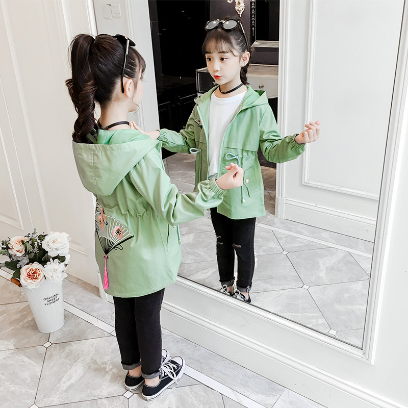 Children's clothing girls' windbreaker spring and autumn mid-length version 2021 new Korean version of the Western style female baby children's middle-aged children's jacket tide