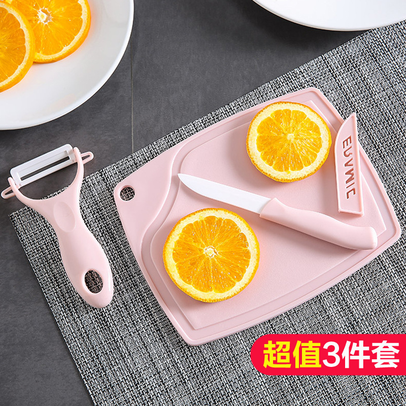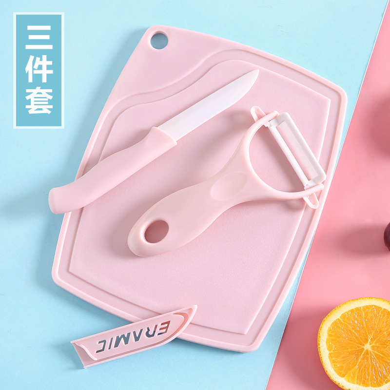 Ceramic fruit knife peeler cutting board chopping board three-piece household kitchen ceramic knife cutting vegetable peeling knife knife