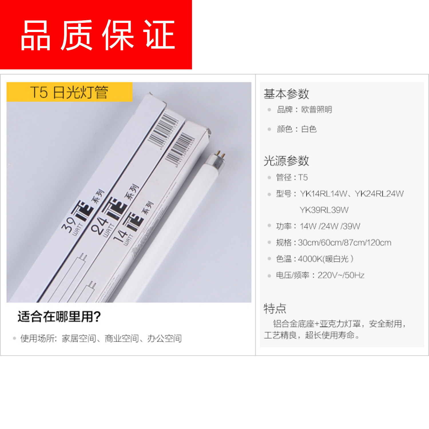 24W mirror lamp lamp 4000K light length 56 2cm OPT5-21W white light replace 39W (1 installation) Raj T5-21W-4000K replace 39
