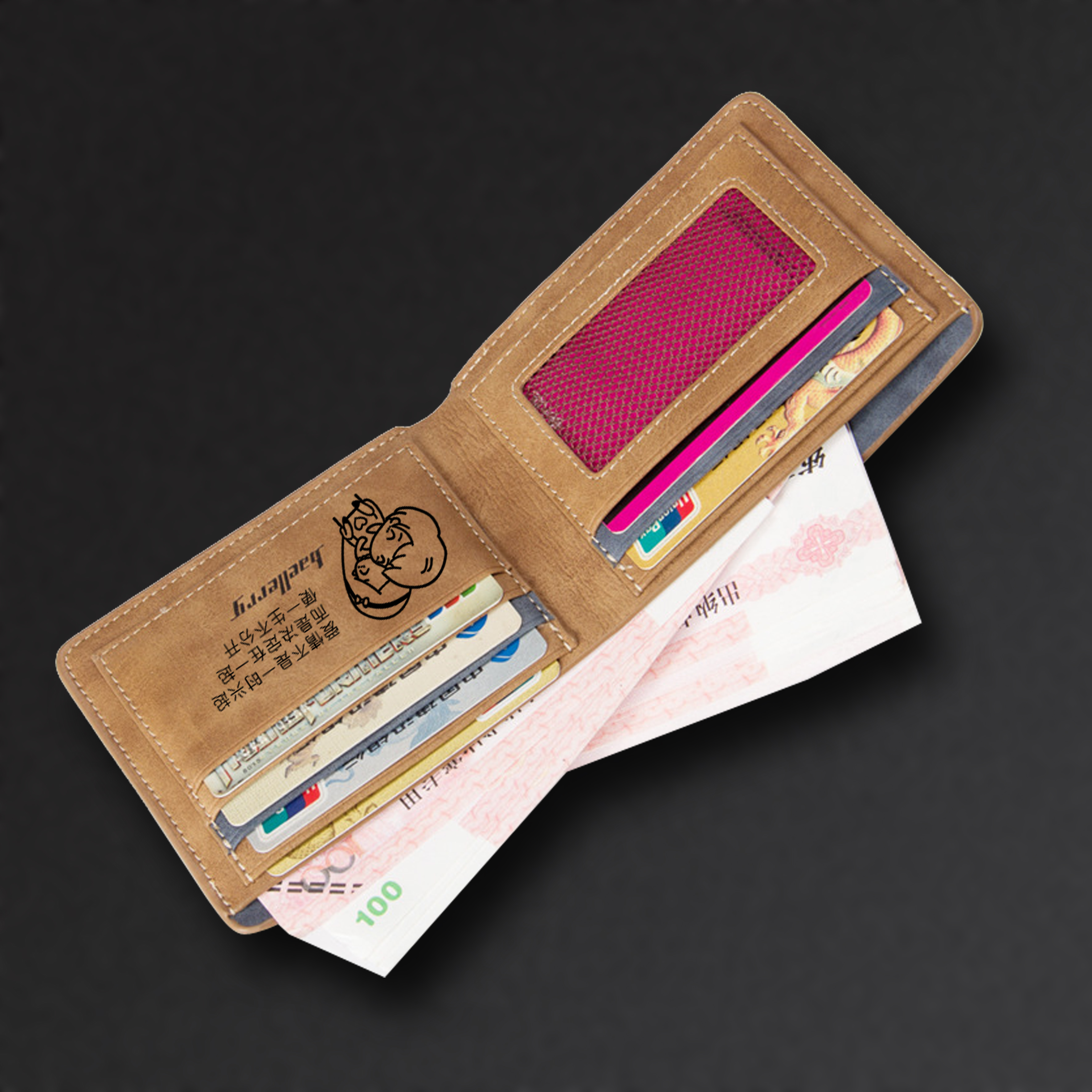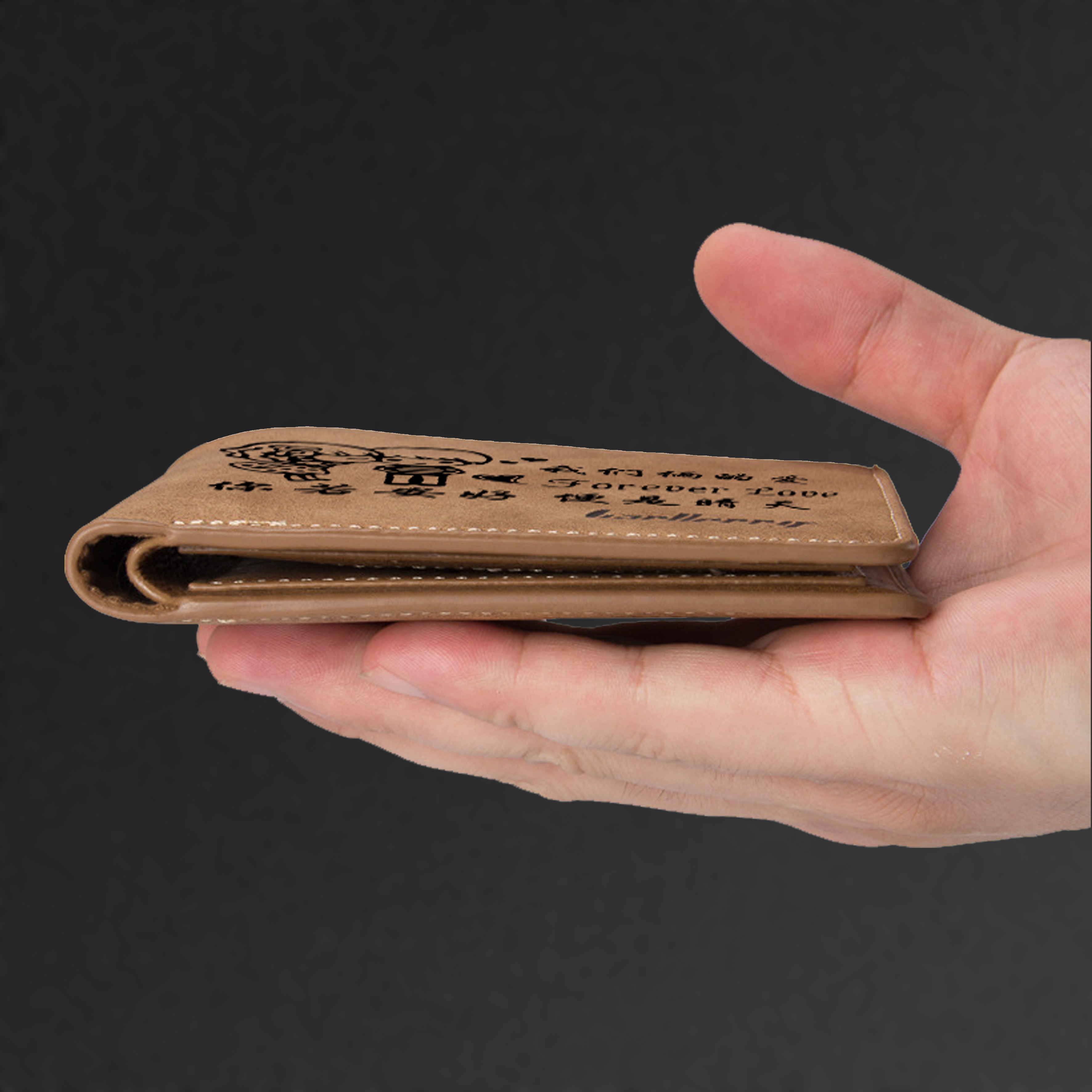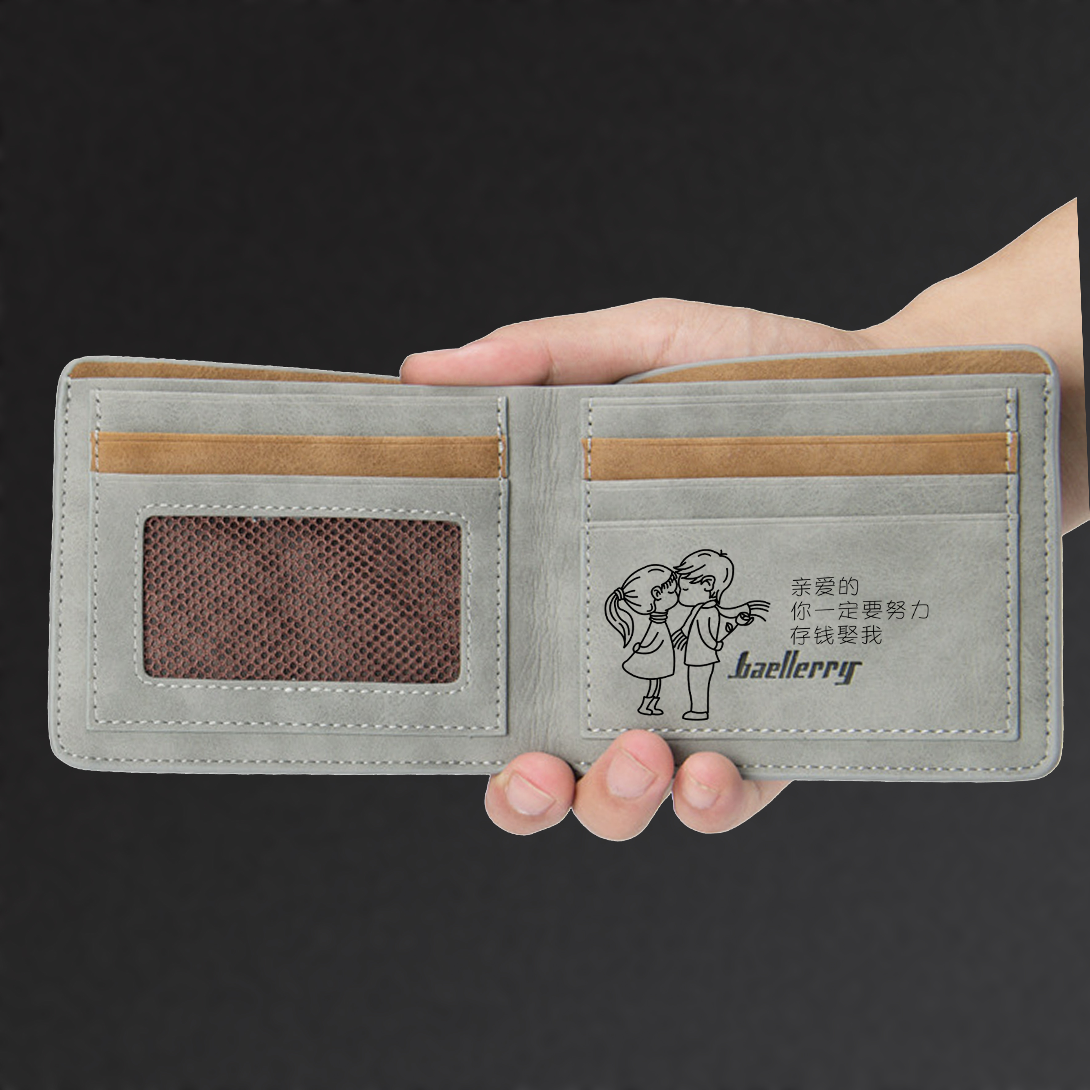 Ultra-thin diy custom wallet to send dad boyfriend leather U simple lettering Korean version tide short wallet birthday gift