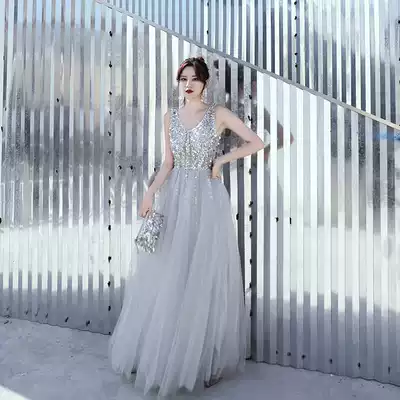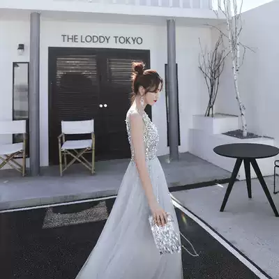Grey evening dress socialite fairy Noble 2021 new high quality sexy princess birthday dress high end summer