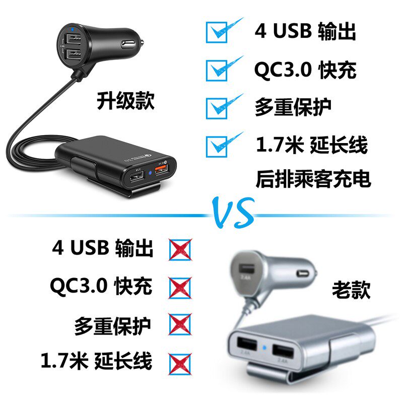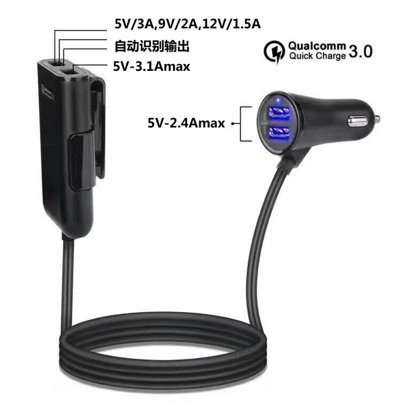 Car One drag four-car front and back row 4USB mouth on-board charger multifunction double-port car charging quick-charging Apple-Taobao