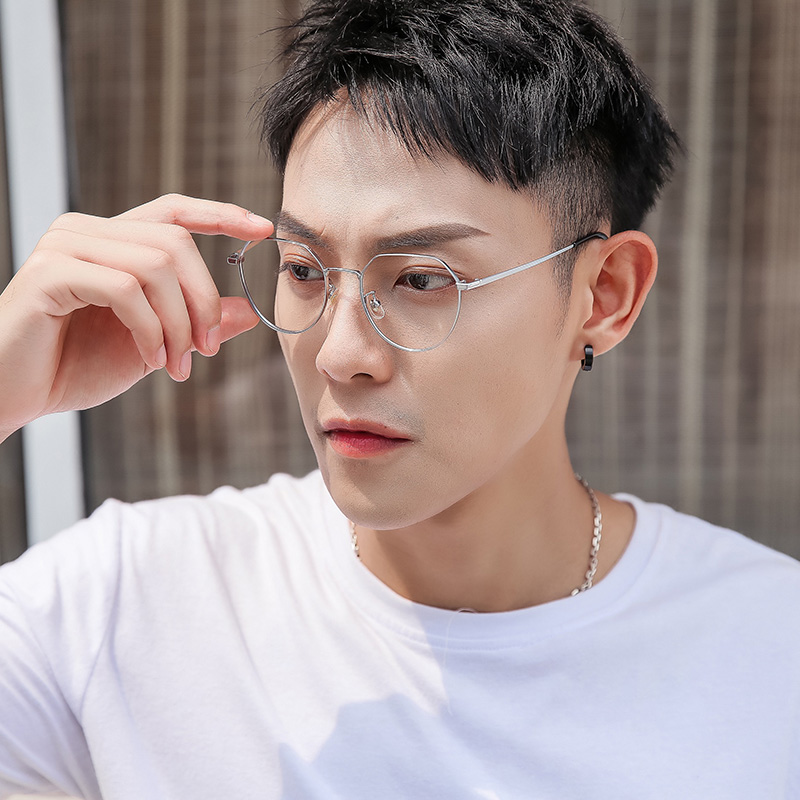 Pure titanium myopia glasses female retro net red glasses frame frame Male large frame can be equipped with a large face makeup eyes