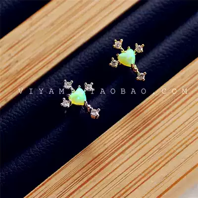 Cross ear needle European and American baroque retro Korean direct delivery imitation opal fluorescent green love ear bone nail small ear