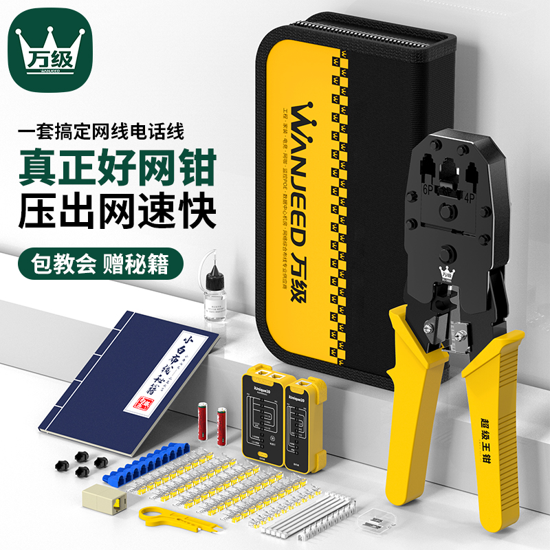 Ten thousand domestic engineering professional wang xian qian suit Super Five 6 six 7 seven types of cable to Crystal Head crimping tool network connector tester pressure wire clamping pliers kit broadband production wang qian