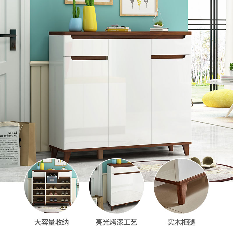 Nordic shoe cabinet Simple modern household solid wood legs Living room foyer cabinet Entrance cabinet Multi-functional door balcony cabinet