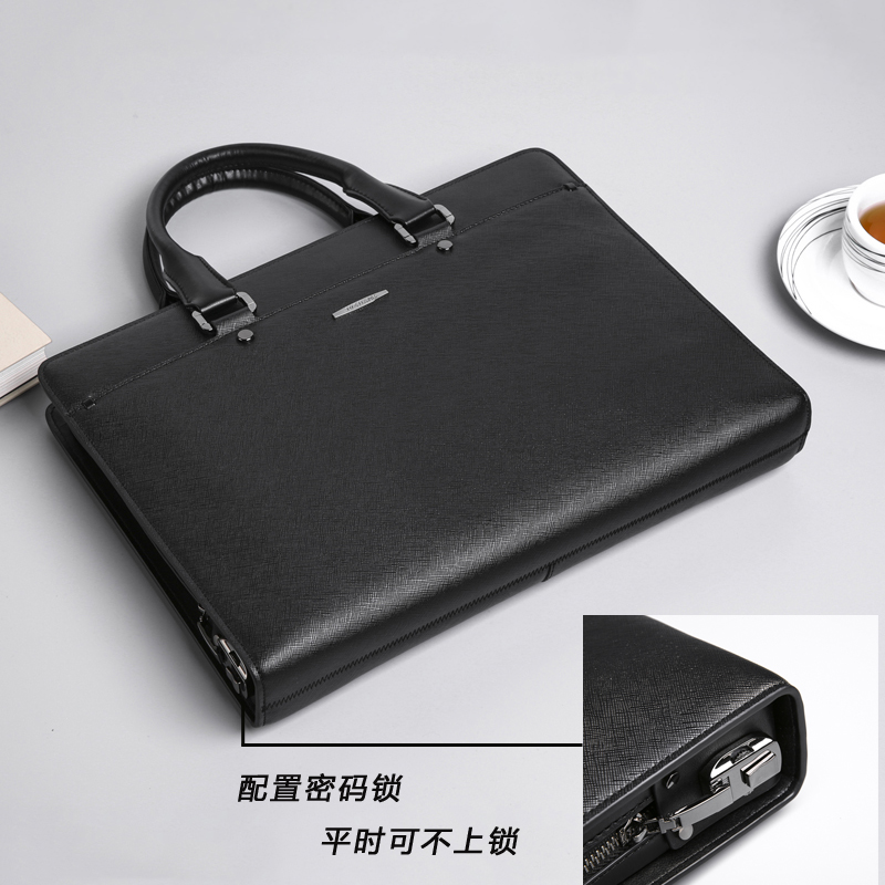 Leather men's bag briefcase men's handbag hand holding password lock briefcase men's business bag civil servant bag genuine leather