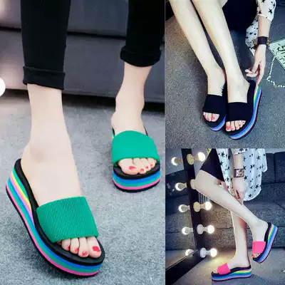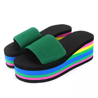 2019 New slippers women wear summer indoor home soft bottom black high thick bottom high heel fashion slope heel home